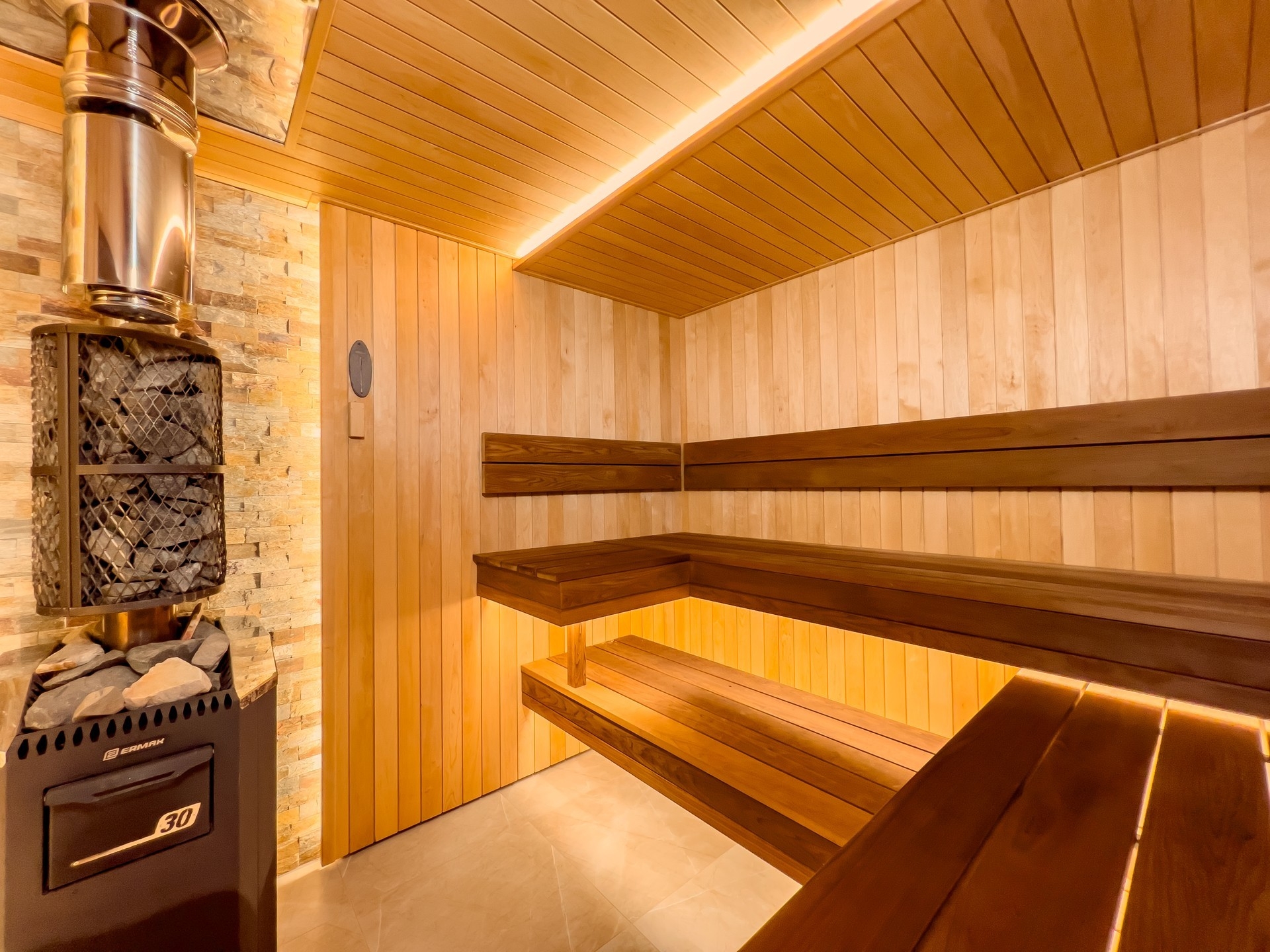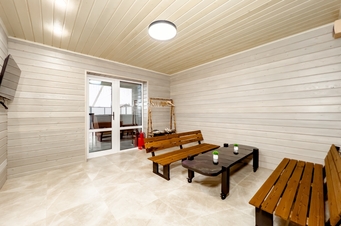 Удобный выход к чану: сможете из парилки сразу запрыгнуть в чан и обратно. Вы сможете чередовать жар парной с прохладой воды в чане!