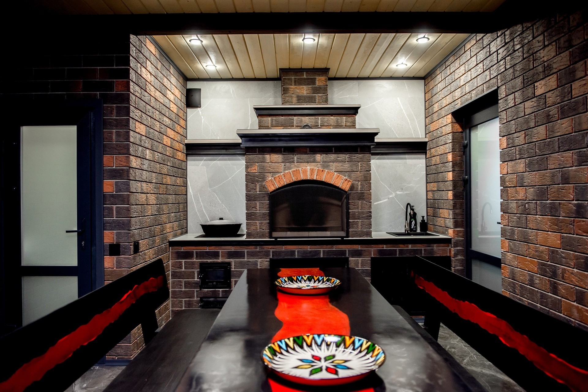 На первом этаже Вас ждет просторная гостиная с мангалом,